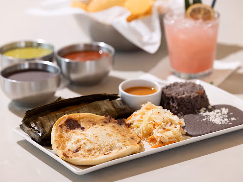 Grilled chicken breast, sautéed poblano peppers, mushrooms, sour cream sauce, black beans, and Spanish rice.